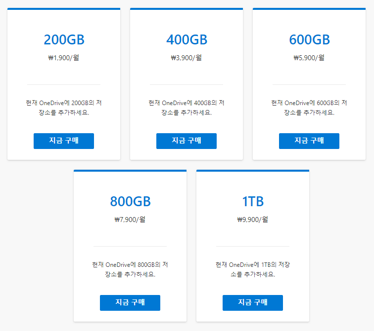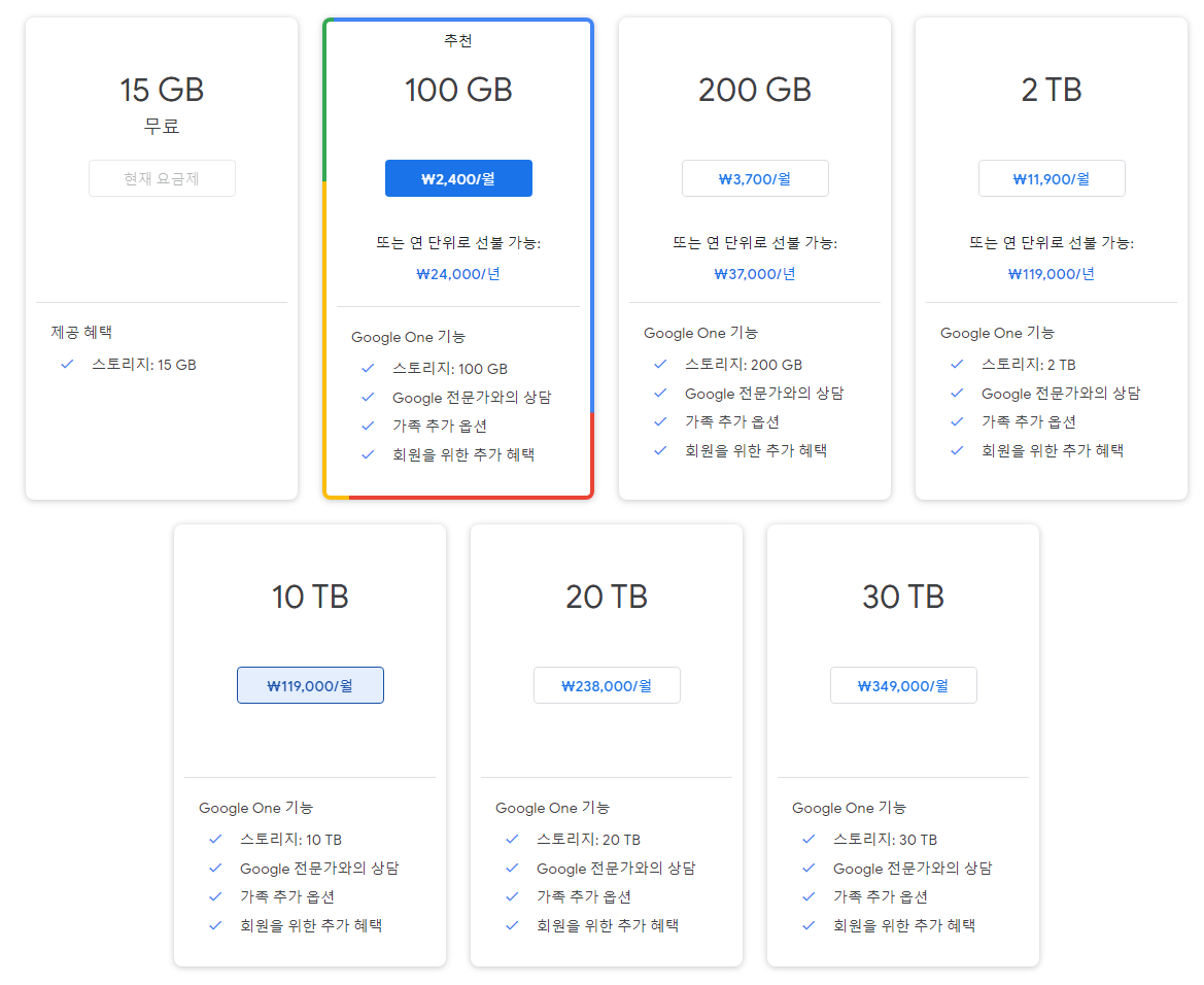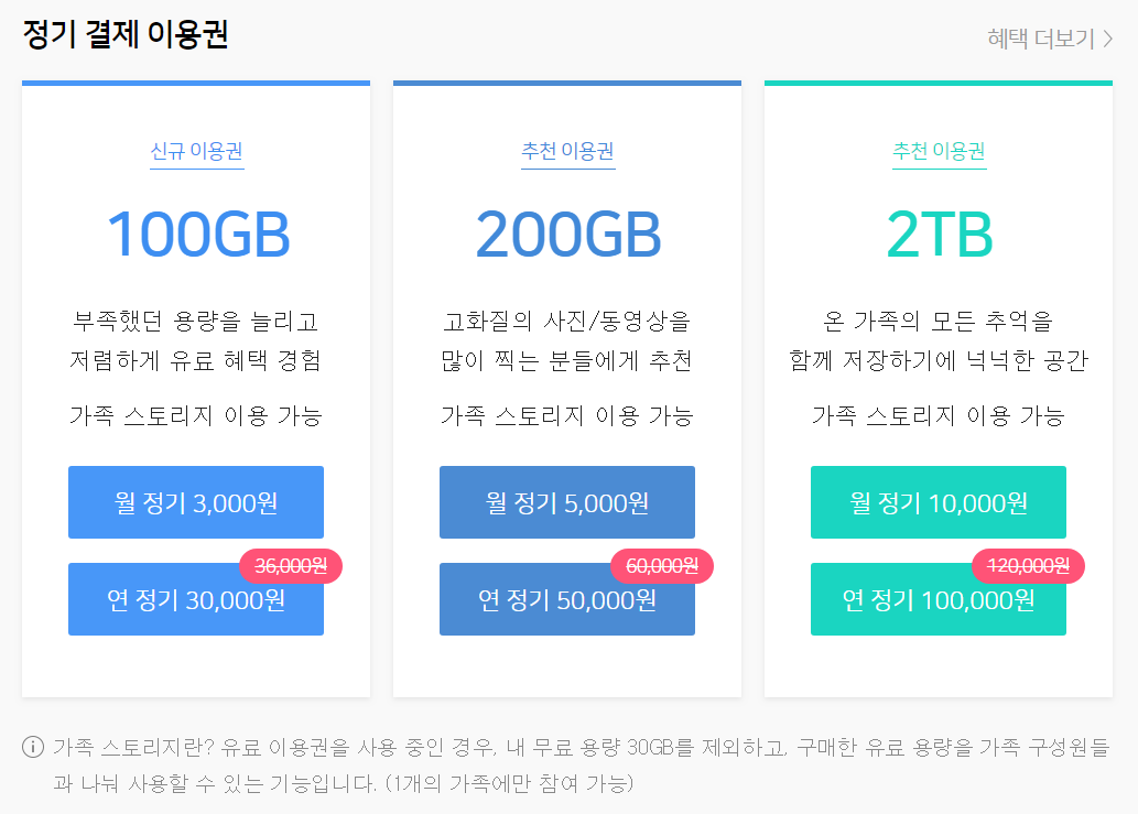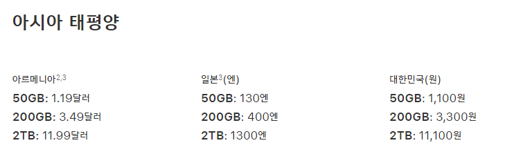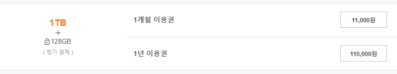 100GB에 연3만원, 2TB에 연 10만원이다.