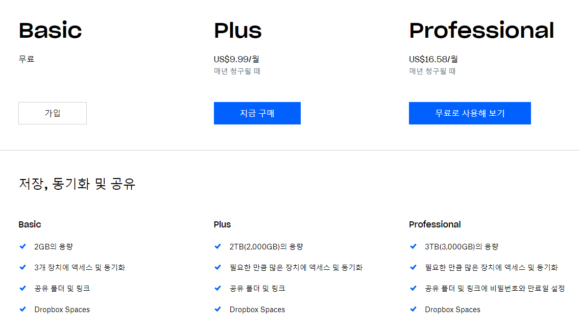 드롭박스는 개인이 사용하기에는 가성비가 떨어지는 상품이라고 생각한다.