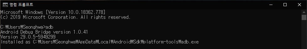 명령창에서 adb를 실행하면 결과를 볼 수 있다.