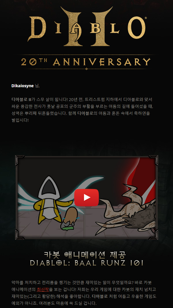 디아블로2 20주년!! 기념으로 카봇 애니메이션 제공한다고.