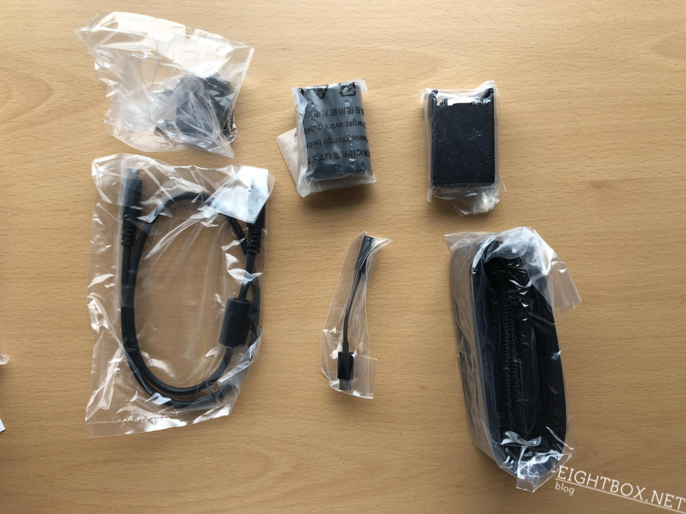 충전케이블, 젠더, 스트랩, 배터리 등등 들어있다.