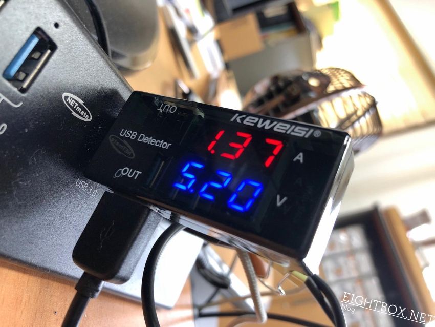 얼마나 전력을 먹는지 궁금해서 볼트게이지에 연결도 해 보았다.