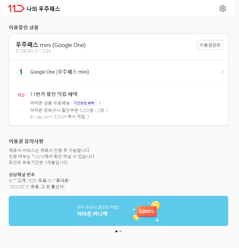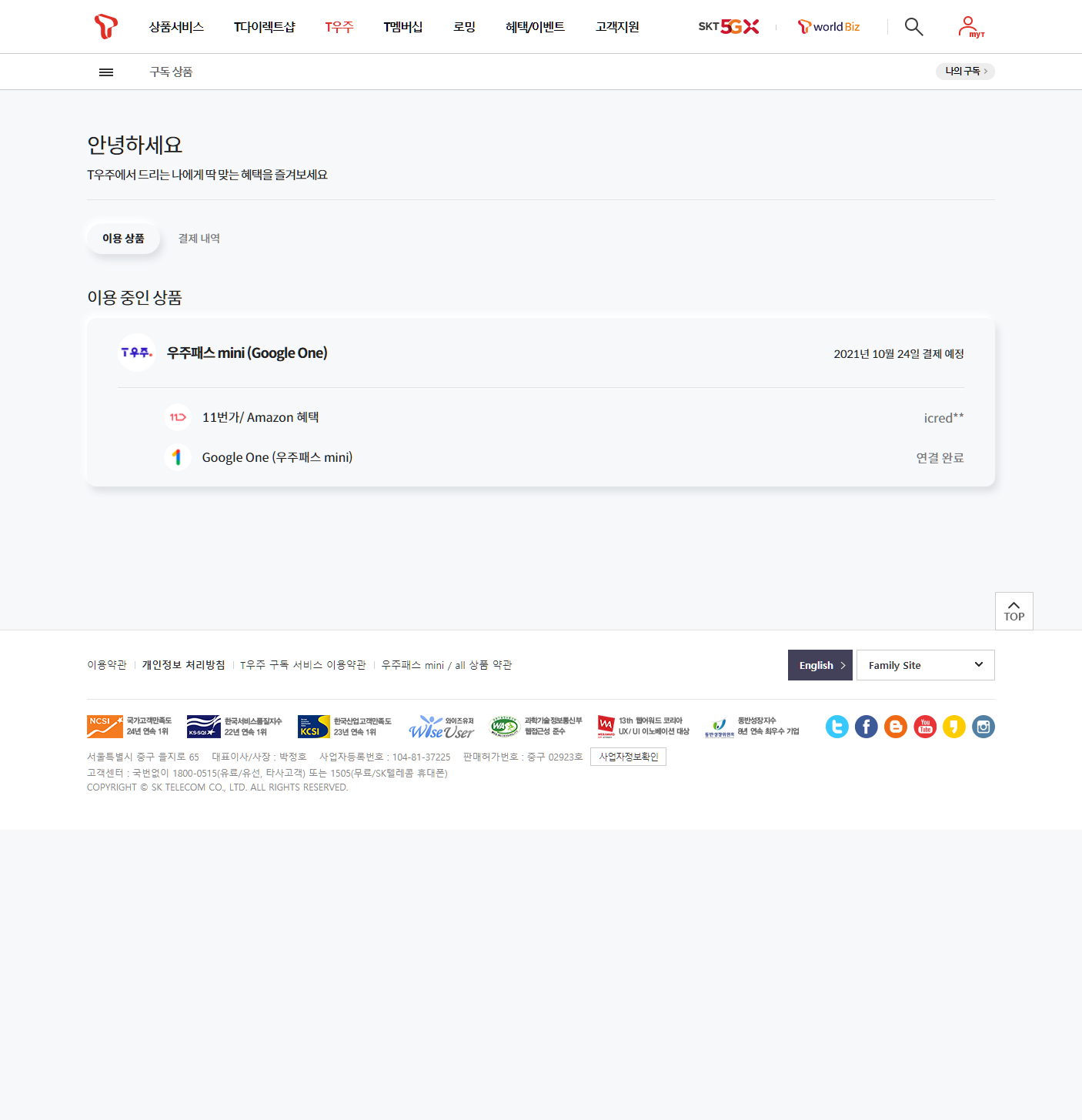 결론 : 11번가에서 우주패스로 구글아이디 연동 실패되면, 티월드에서 접속해서 연동하자!