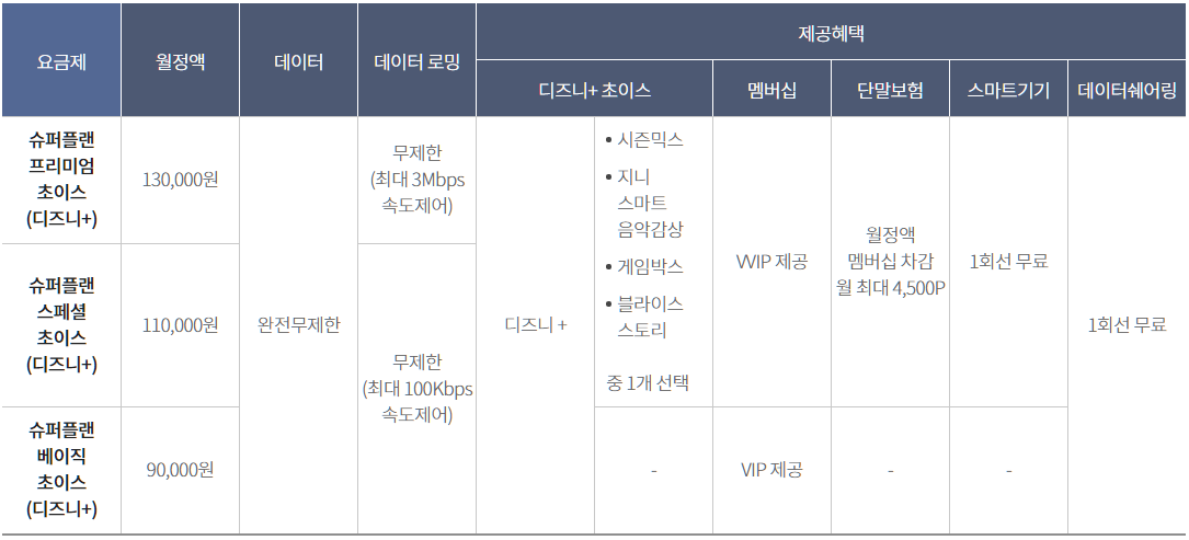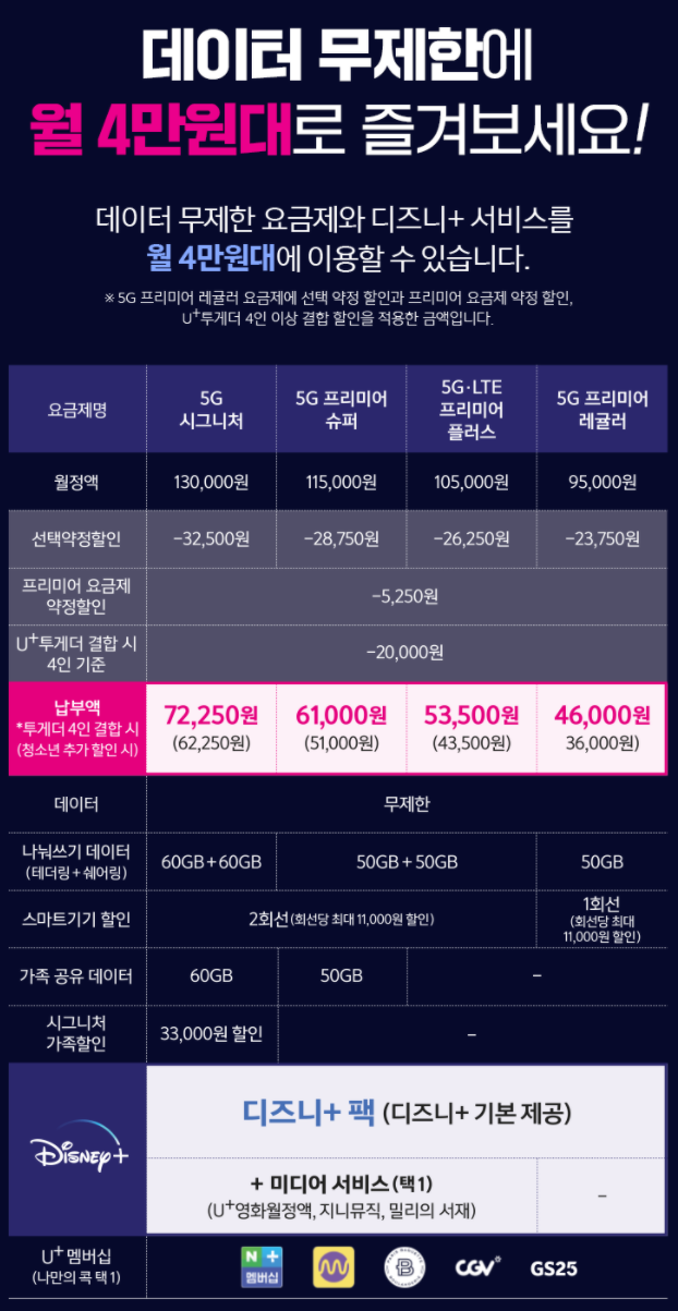 3. LG유플러스, 디즈니플러스 요금제