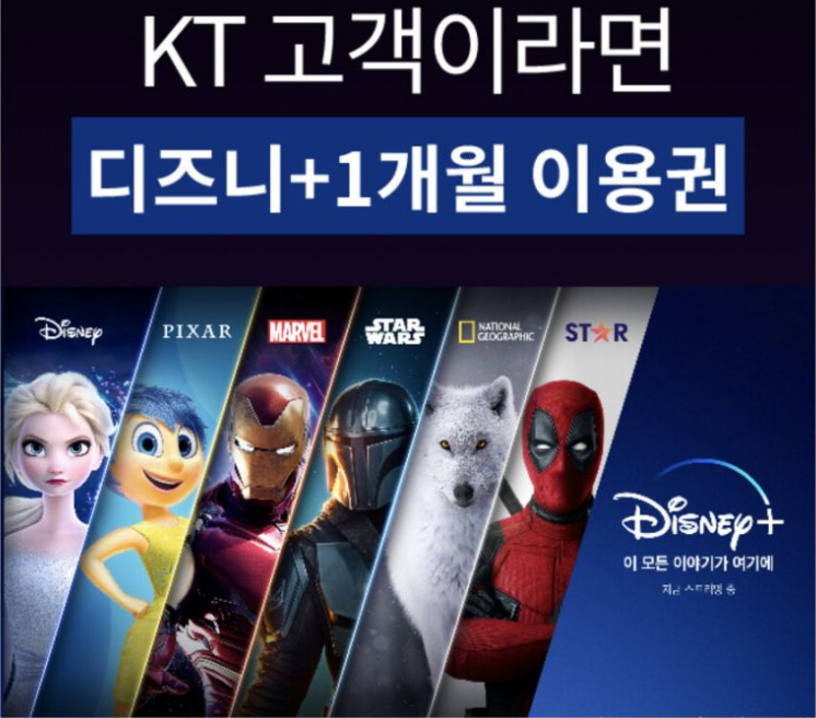 KT에서는 디즈니플러스 이용권을 1개월무료로 주고 있다,