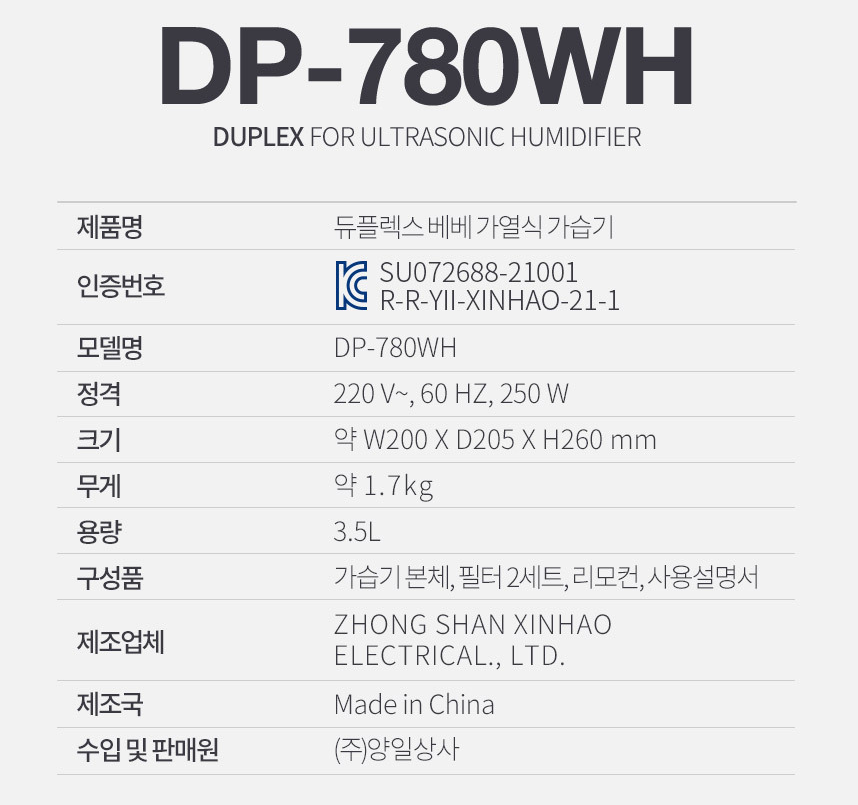 듀플렉스몰 베베 리모컨 가열식가습기 3.5L DP-780WH : 듀플렉스몰