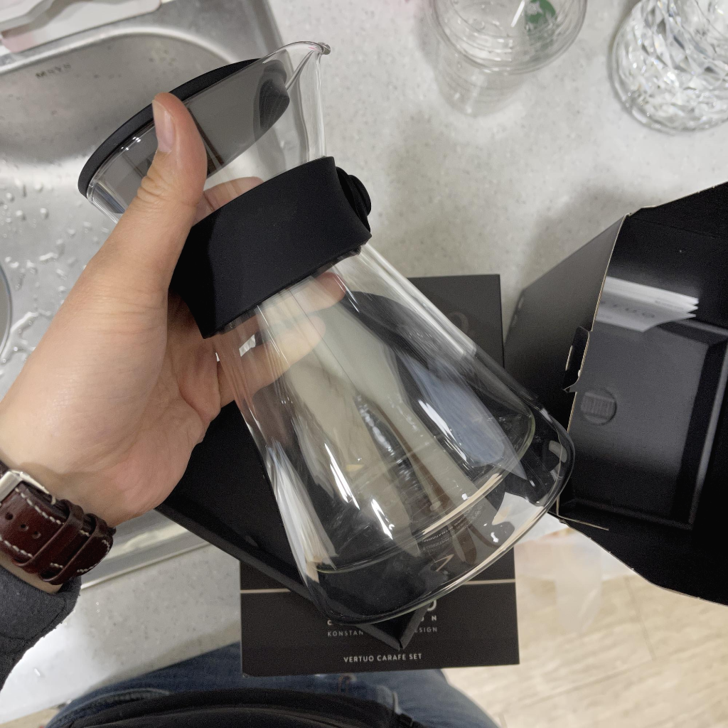 카라프도 이중유리도 되어 있어서, 커피도 빨리 식지 않고 따뜻함이 오래간다.