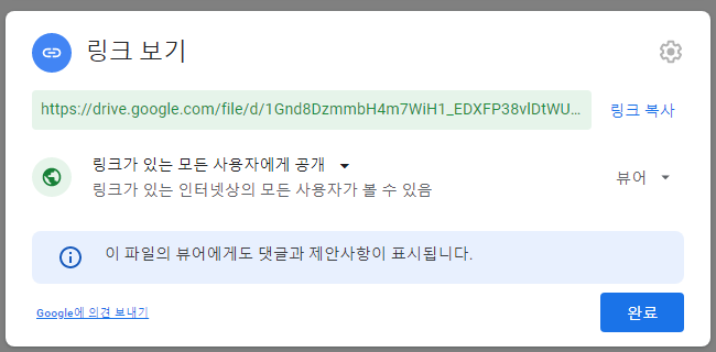 링크 보기에서 ‘링크가 있는 모든 사용자로 변경’을 클릭해 주세요.