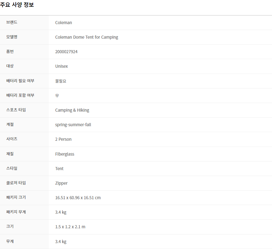 2인용기준, 3.4Kg으로 가볍다.