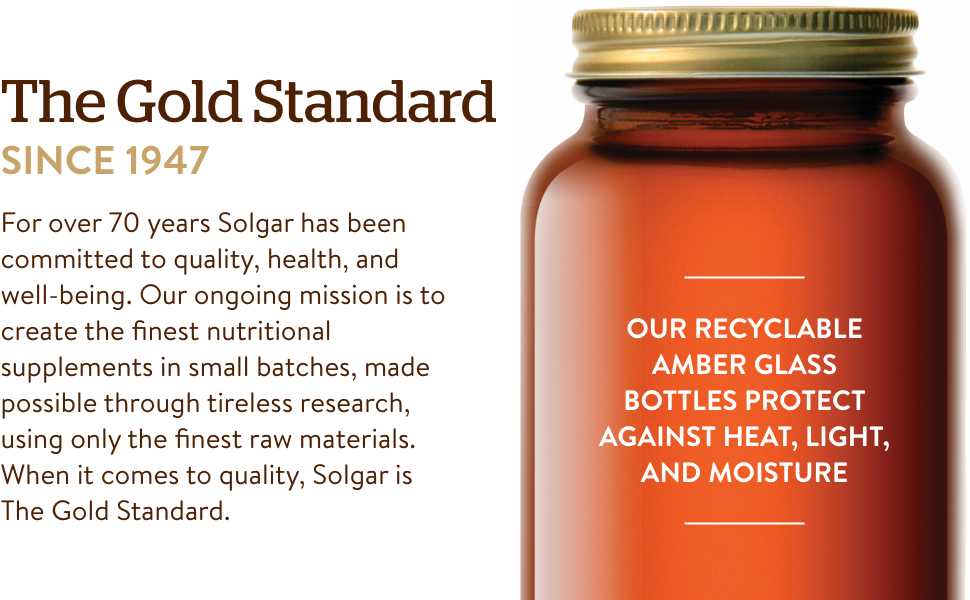 - 골드 스탠다드: Solgar는 70년 이상 품질, 건강 및 웰빙에 전념해 왔습니다. 저희의 사명은 최고의 원료만을 사용해 끊임없는 연구를 통해 소량으로 최고의 영양 보충제를 만드는 것입니다