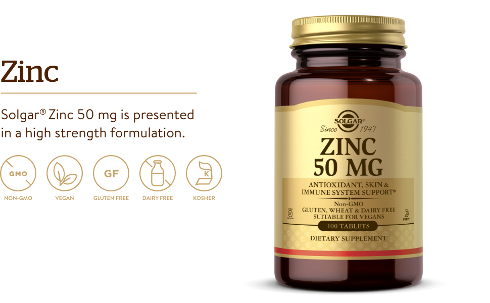 - 프리미엄 품질 아연: Solgar 아연은 50mg의 아연을 함유하고 있으며 이는 일일 권장 섭취량의 455%에 해당합니다
