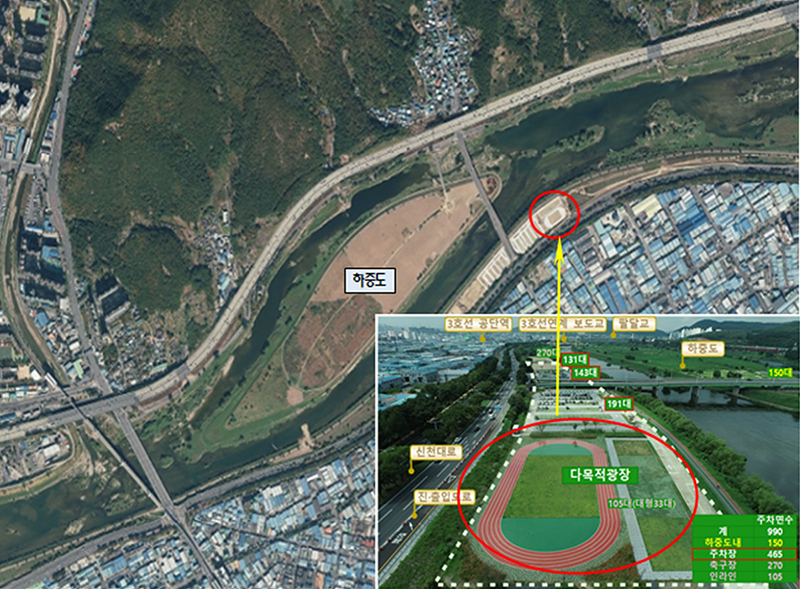 - 교통편 : 자가용(신천대로⇒하중도) ※ 주차장 최대 990대 가능