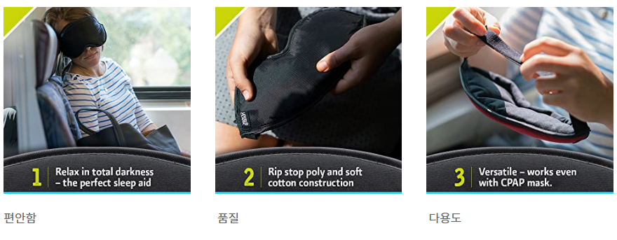 다용도: 훌륭한 여행용 액세서리일 뿐만 아니라 가정에서도 사용하기 적합합니다. 낮 수면, 불면증 완화, 두통, 안구 건조 등에 좋습니다. CPAP 마스크에도 사용할 수 있습니다