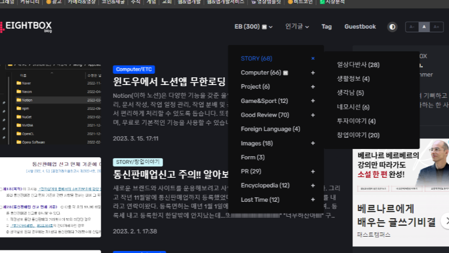 광고 들어갈 자리가 몇군데 있었는데, 광고도 조금 이쁘게 보이고 싶어서 요즘 시간나면 그부분을 고쳐보고 있다.