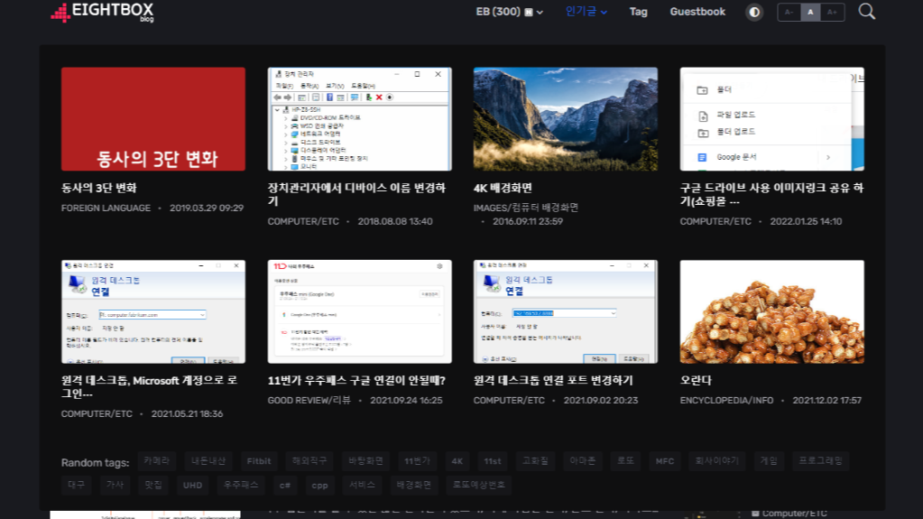 티스토리 가이드도 보다가 귀찮아서 다른 티스토리 공식 스킨 가져다가 좀 뜯어보고 내가 원하는것만 디자인해서 만들어서 사용했었다. 다음에 시간적 여유가 더 생기면 이녀석도 조금 더 수정해서 EB1A1으로 공개해볼까 싶다.