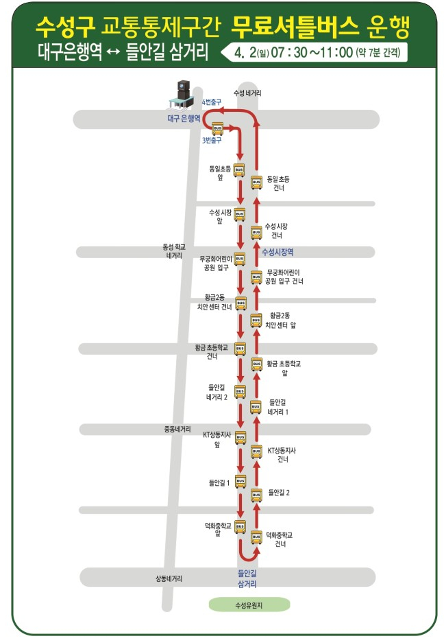 수성구 교통통제구간 무료셔틀버스도 운행하네요.