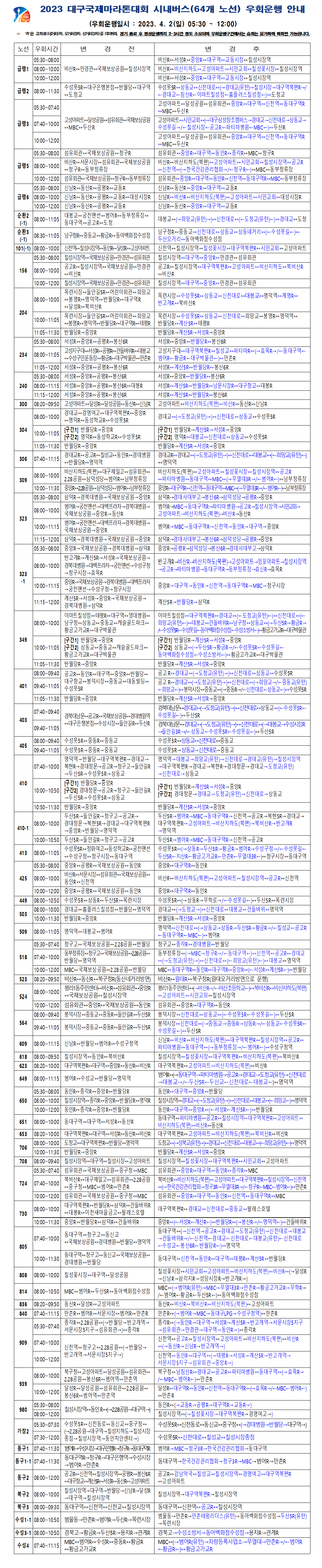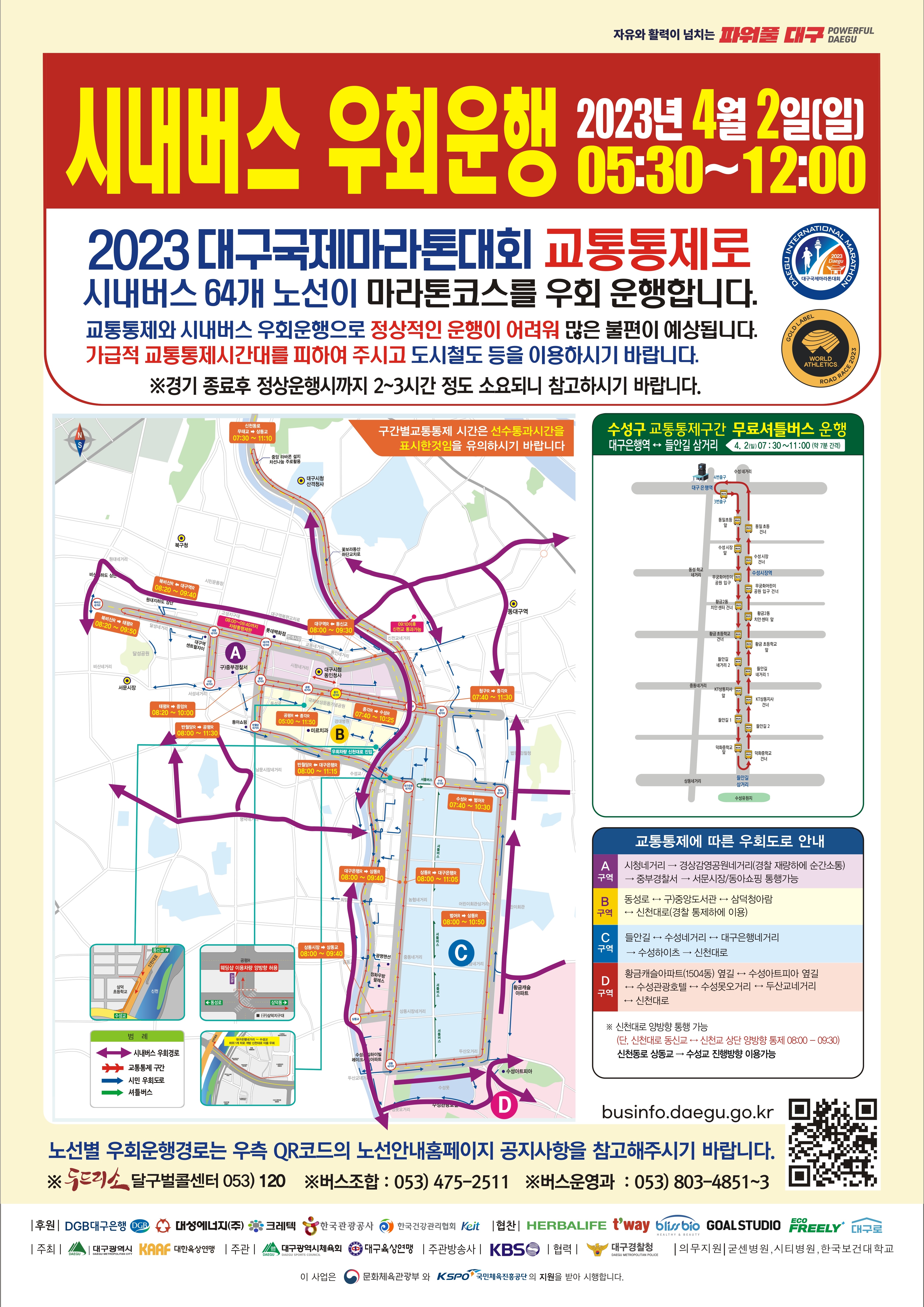 2023 대구국제마라톤대회 교통통제 안내 (시내버스 우회운행 및 순환버스)
