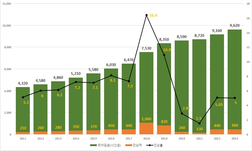 2024년 최저임금이 시간당 9,860원, 월급 기준(209시간) 206만740원으로 결정되었습니다. 이는 올해보다 2.5% 높은 금액으로, 노사 모두 반발하고 있습니다. 19일 밤샘 논의 끝에 결정된 이 금액은 노사가 제시한 최종안 1만원과 9천860원 중 후자가 17표로 승리한 결과입니다.