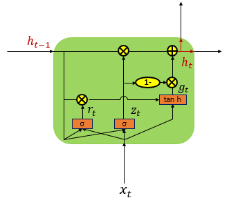h~_t = tanh(W · [r_t * h_(t-1), x_t] + b),h_t = (1 - z_t) * h_(t-1) + z_t * h~_t - 역할: 새로운 은닉 상태를 계산합니다. 리셋 게이트는 이전 정보를 얼마나 유지할지 조절하고, 업데이트 게이트는 새로운 정보를 얼마나 받아들일지 조절합니다.