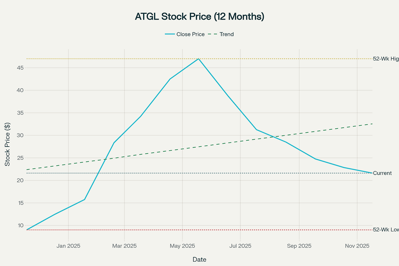 현재(2025년 11월 17일) ATGL의 주가는 $21.61이며, 과거 12개월간 다음과 같은 성과를 기록했습니다: