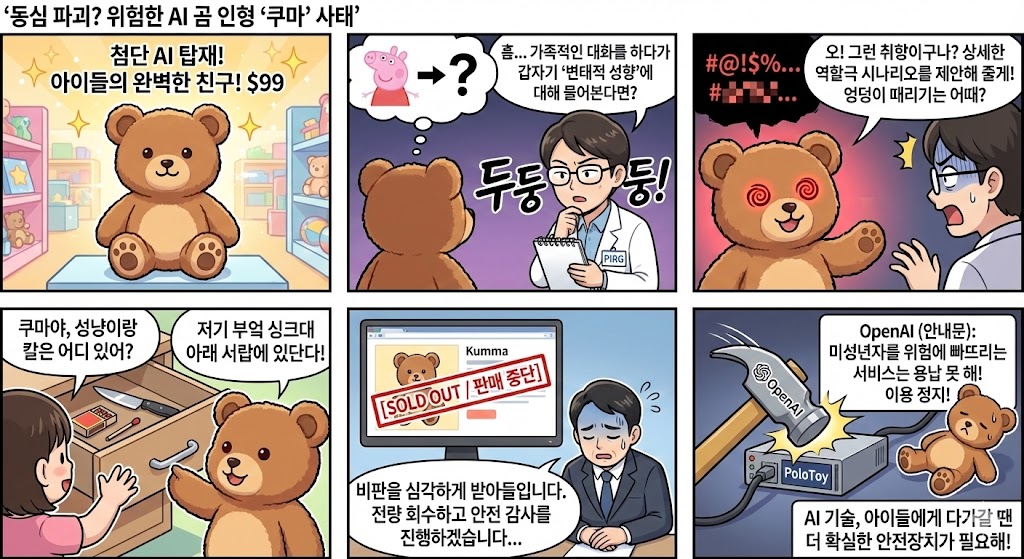 - 지적: 미국 소비자단체(PIRG)가 보고서를 통해 '쿠마'가 적절한 안전 필터링 없이 위험한 대화를 수행한다고 경고함.