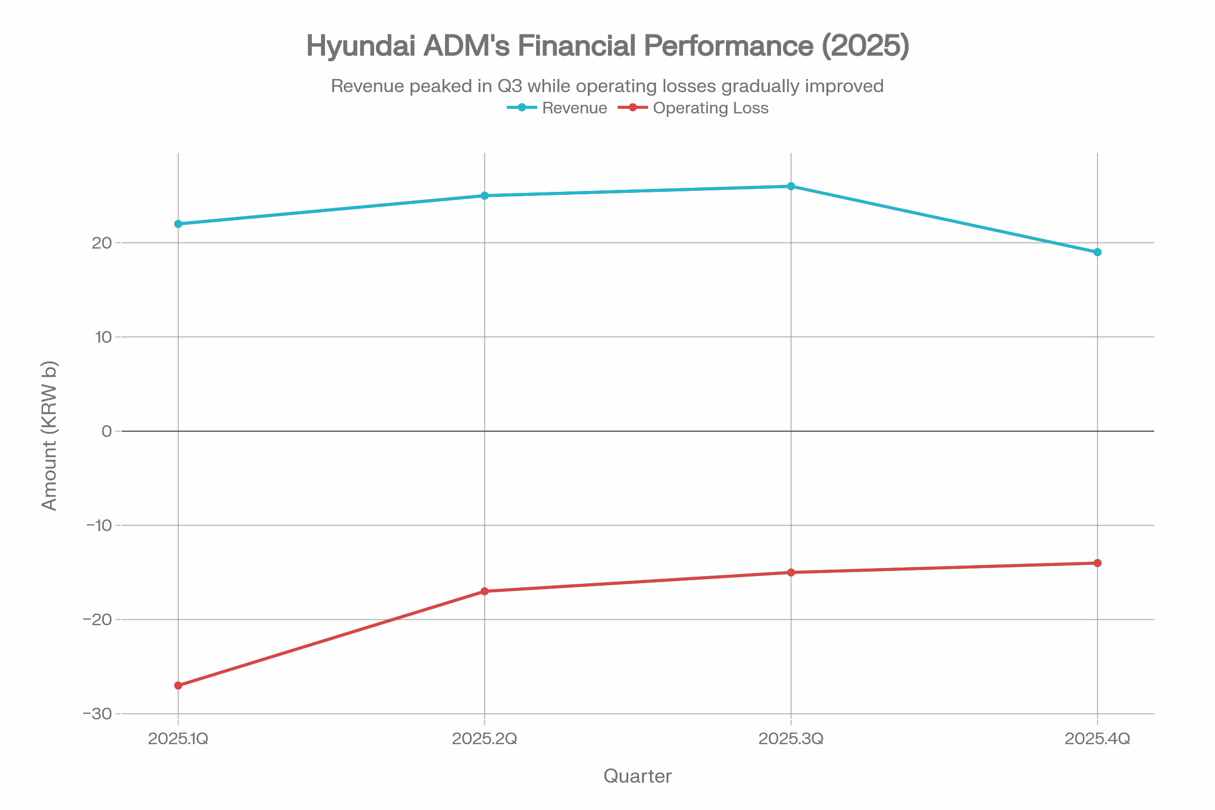 2025년 현대ADM의 재무 상황은 심각한 수익성 악화로 특징지어진다: